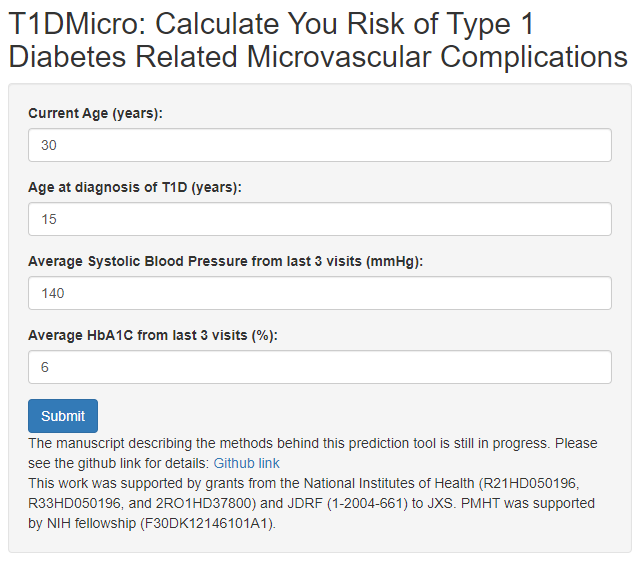Most risk calculators for diabetic microvascular complications are limited to research labs because of how complicated the statistical analysis is. This calculator was developed to fill the gap and allow individuals to estimate their own specific risk.