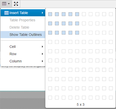 To insert a table, select the "Table" drop-down icon on the toolbar.